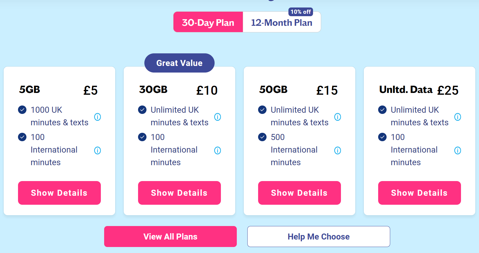 Lebara keeps things refreshingly simple. No confusing tiers. No bundles with things you’ll never use. Just SIM-only plans, available on rolling 30-day contracts with no long-term commitment required.